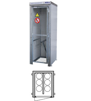 • Verzinkte beugels met ketting om 50 L normcilinders per drie stuks (in de diepte) vast te zetten.